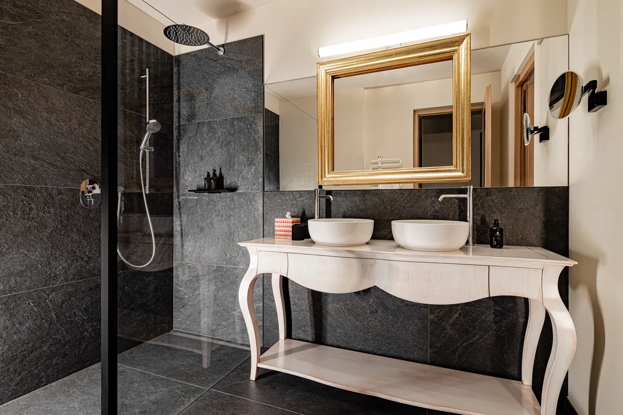 Viel Licht und Luft für Zwei mit dem Weindorf Kaltern im Blick. Entspannender Raum für Genuss und Erleben im Ambiente aus Vergangenheit und Gegenwart.